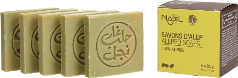 Kis ajándék minden bőrtípus számára - ideális vendégszappanként is! 5x Aleppo szappan, egyenként 20g