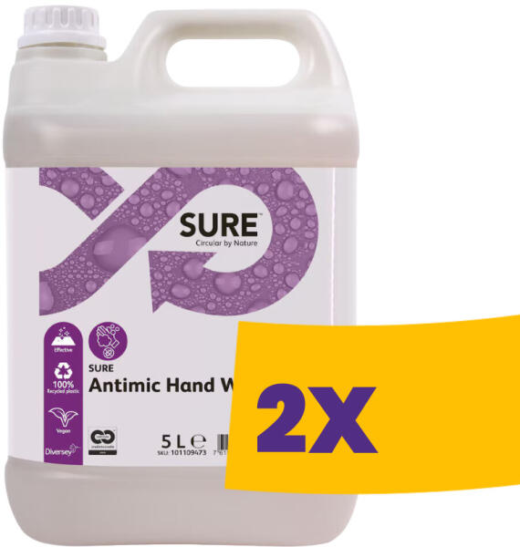 A SURE Antimic kézmosó egy színezékmentes kézfertőtlenítő szappan, amely élelmiszeripari minőségű szagsemlegesítő összetevőket tartalmaz. A SURE Antimic kézmosó egy egyedülálló, növényi alapú, teljesen biológiailag lebomló* professzionális termékcsalád része, amely minden napi tisztítási és testápolási igényt kielégít. A SURE Antimic kézmosó egy színezékme