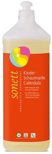 A gyermekek bőrének finom tisztítására alkalmas szappan, spagírikus növény-feldolgozási módszerrel készült, körömvirág esszenciával. Az adagolóból nyomható könnyed gyümölcsös illatú habbal élvezetes a kézmosás a gyerekek számára. A habban lévő olajok és esszenciális olajok 100%-ban ökológiai gazdaságból származnak. A hab állagú szappan nagyon gazdaságos has