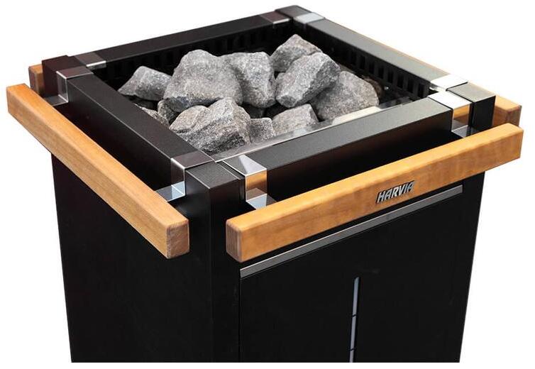 Harvia CLUB szaunakályha, vezérlés nélkül. A Club szaunakályhát a Harvia cég abból a célból tervezte, hogy a reggeltől estig működő szauna helyiségeket ellássa egy professzionális és hosszú élettartamú fűtőtesttel. A szaunakályha tökéletes választás nagy alapterületű izzasztófürdőkhöz. A lábakon álló Club elektromos szaunakályhák a világhírű Harvia minős