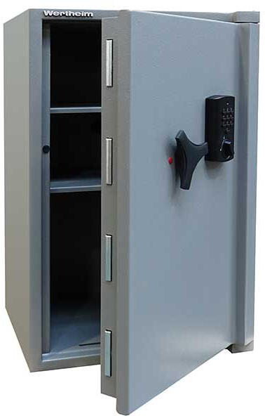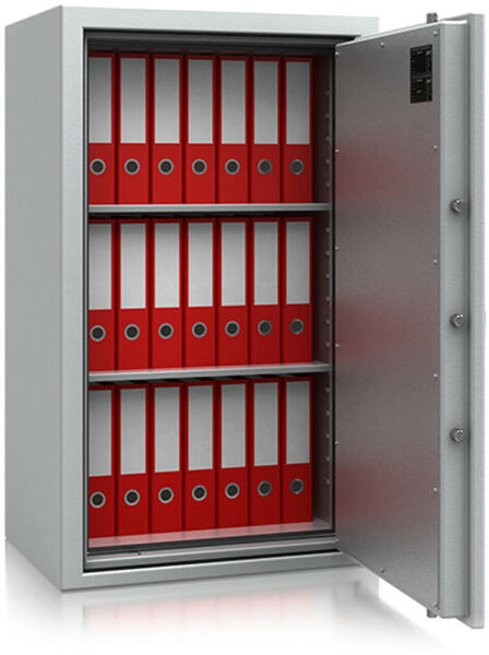 otthoni páncélszekrény passzív zárral DIN 4102 szerinti tűzálló szigetelés többrétegű acél test (vékonyított a maximális térfogatért) 80 mm vastag, többrétegű acél ajtó (szervizkulcsos) 25 mm-es speciálisan megerősített beton töltet a testben és az ajtóban (lángvágás és flexelés ellen) 25 mm-re kiemelkedő csillag alakú kilincs és zsanér 180 fokos ajtónyitás,