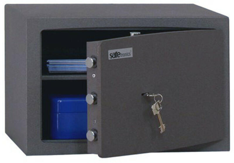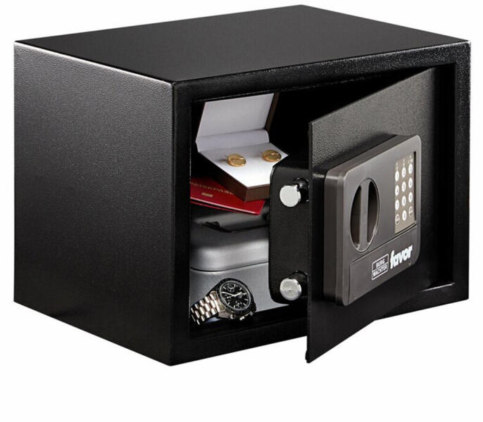 széf elektronikus zárral egyfalú széf digitális számzárral1,5 mm-es egyfalú acél test3 mm vastag acél ajtó90 fokos ajtónyitás jobboldali zsanérokkalegyirányú zárás 16 mm-es acél hevederekkelelektronikus számkombinációs zárfólia billentyűzet, külső elemtartóval1-8 számjegy közötti felhasználói kód3 téves kódbevitel után 5 perces büntetőidőmechanikus vésznyit