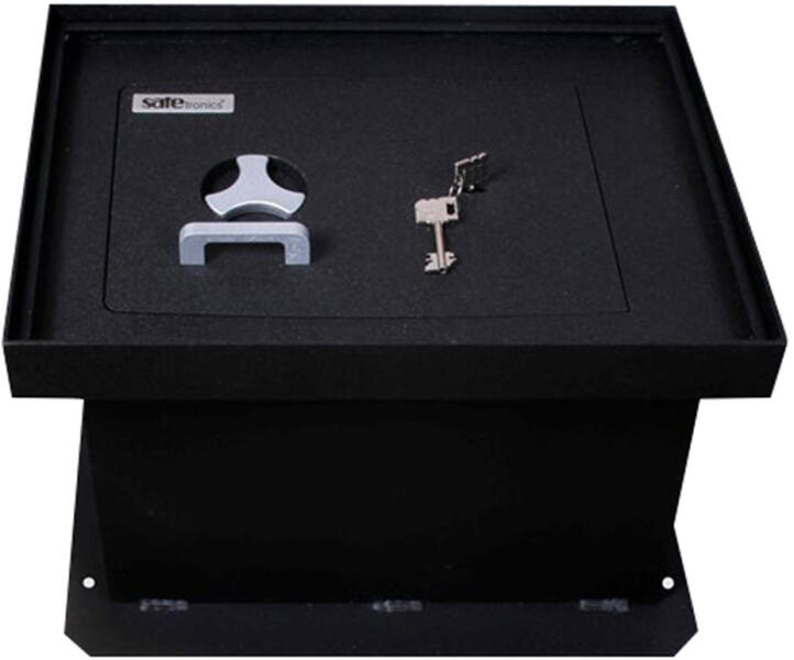 SAFEtronics-PT 23 M padlószéf kulcsos zárral minőségi padlószéf otthonába5 mm vastag, erős acél test55 mm vastag duplafalú ajtó, 10 mm-es acél borítással90 fokos ajtónyitás, erősített belső zsanérokkalháromirányú zárás erős acél hevederekkelajtólapba süllyesztett csillag alakú kilincsmangán acéllappal védett zárszerkezet (fúrás ellen)erős fogantyú segíti az