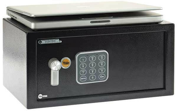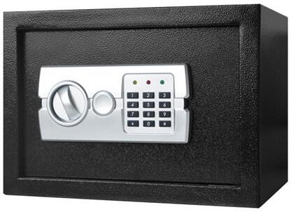 elektronikus laptopszéf besurranó tolvajok ellen 1,5 mm-es egyfalú acél test, 4 mm-es acél ajtó 90 fokos ajtónyitás jobboldali zsanérokkal egyirányú zárás 16 mm-es kerek acél hevederekkel elektronikus számkombinációs zár 3-8 számjegy közötti felhasználói kód 4 téves kódbevitel után 3 perces büntetőidő mechanikus vésznyitási lehetőség körkulccsal zár 4 db LR03 AA