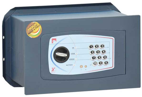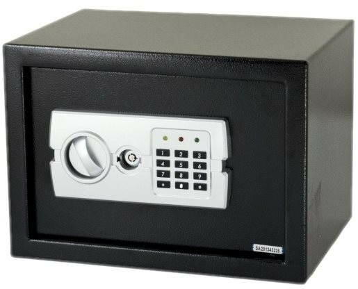RAL7016 antracit Acél széf elektronikus zárral, számbillentyűzettel és karral van ellátva a kényelmes kinyitáshoz. Megfelelő méret laptop tárolására. A számkód tartalmazhat 3-8 számjegyet, így 100 000 000 lehetséges kód. Időzáras 3rosszul bevitt kód után. Alacsony elem töltöttség kijelzéssel. Falba vagy talajba rögzíthető. A csomag tartalma AA 4 db, 2 db vészkulcs,