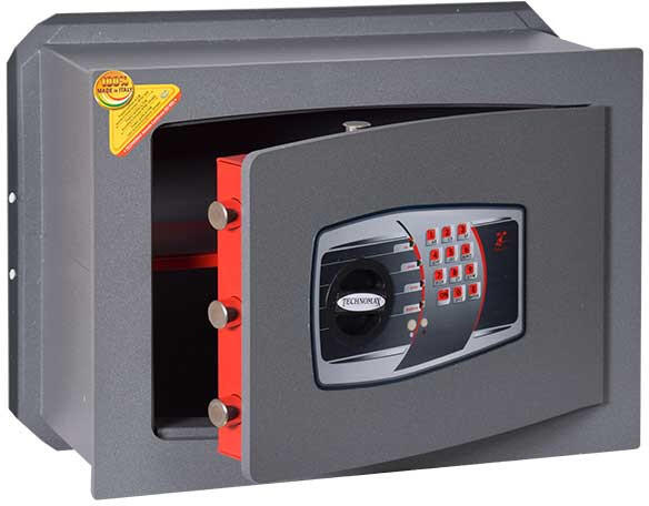 fali trezor elektronikus zárral 2 mm-es trezor test megerősített 10 mm-es előlappal 10 mm-es lézervágott edzett acél ajtó 90 fokos ajtónyitás rejtett zsanérokkal egyirányú (DT 3-ig) vagy háromirányú (DT 4-től) zárás 22 mm-es kerek acél hevederekkel felfúrás ellen mangán acéllappal védett zárszerkezet elektronikus számkombinációs zár fólia billentyűzet két felhaszn
