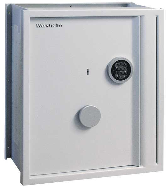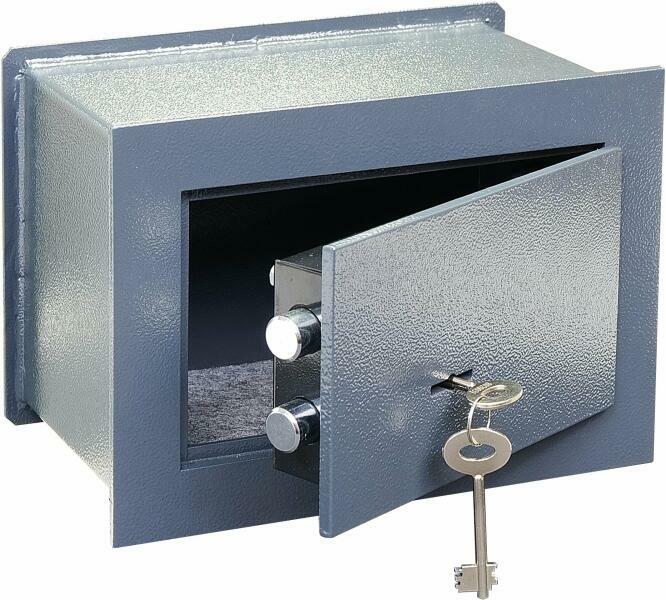 fali páncélszekrény passzív zárral 2mm-es acél test (hátsó acél pajzzsal is rendelhető) 65mm vastag duplafalú ajtó, 8mm-es acél borítással 20mm-re kiemelkedő kör alakú alumínium kilincs 90 fokos ajtónyitás, erős belső zsanérokkal háromirányú zárás tömör acél hevederekkel (15x90mm-es oldalra, 10x50mm-es felfelé és lefelé) rozsdamentes belső szerkezet és kilincsm
