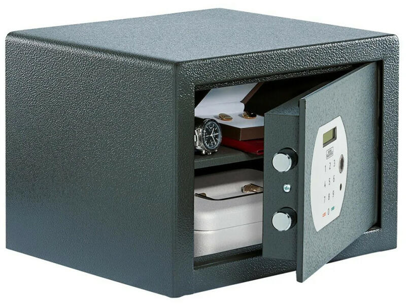 Steinhaus Elektronikus acél széf + kulcs, 200x310x200 mm, Szürke Az elektronikus széf apartmanok, szállodák és motelek számára ajánlott. Ideális pénz vagy más értékek tárolásához. Zárási típus: Zárás / Elektronikus nyitás számjegyek kombinációjával, 3-8 számjegyű kód, 4 db AA típusú 1.5V elem; Manuális kulcs biztonságos nyitás rendszer, ha elfelejtette a program