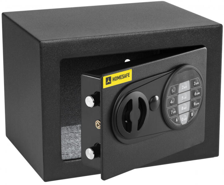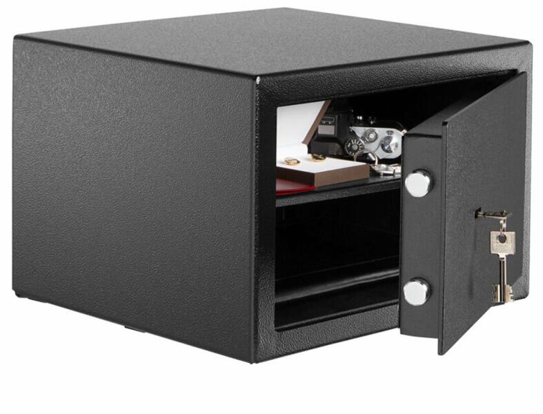 Otthoni kisebb értékű és helyigényű iratok, és készpénz megőrzésére kiválóan alkalmas bútorszéf. Leírás: Erős, duplafalú ajtó 35 mm 2 mm vastag acéllemezből készülő szimpla falú erős acéltest. Kicsi mérete miatt könnyen elrejthető bútorban, Elektronikus zár. A zárat az un. "megfúrásos támadásokkal" szemben 60HRC keménységű anyag védi Padlóhoz és falhoz