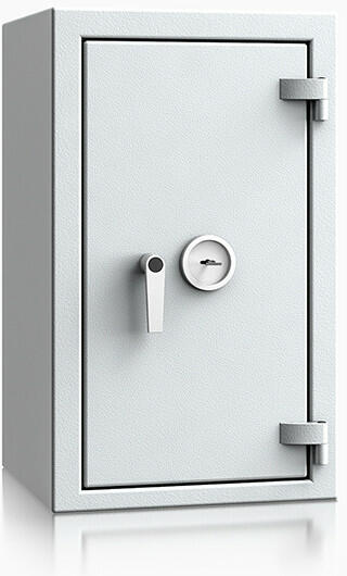 tűzvédett bútorszéf kulcsos zárral DIN 4102-A1 szerinti tűzálló szigetelés minőségi duplafalú bútorszéf otthonába, irodájába 35 mm vastag hőszigetelt duplafalú acél test 45 mm vastag ajtó, 5 mm-es acél borítással 90 fokos ajtónyitás erős jobboldali zsanérokkal egyirányú zárás 24 mm-es forgó acél hevederekkel mangán acéllappal védett zárszerkezet (fúrás ellen