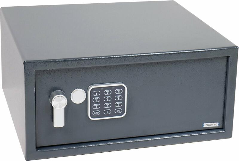 Laptopszéf, elektronikus zár, 24 l, 200x430x350 mm, YALE "YLV/200/DB1" elektronikus laptopszéf besurranó tolvajok ellen 1,5 mm-es egyfalú acél test, 4 mm-es acél ajtó 90 fokos ajtónyitás jobboldali zsanérokkal egyirányú zárás 16 mm-es kerek acél hevederekkel elektronikus számkombinációs zár 3-8 számjegy közötti felhasználói kód 4 téves kódbevitel után 3 perces büntet