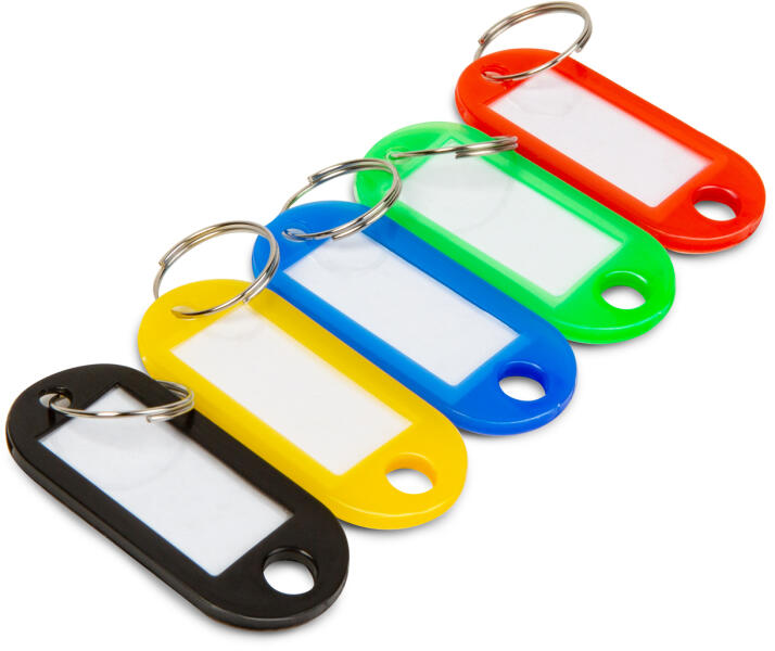 50 db kulcs vagy kulcscsomó azonosítására szolgáló kulcsjelölő szett. A kulcsok könnyen azonosíthatóak és rendszerezhetőek a cimke eltérő színeinek és feliratozhatóságának köszönhetően. Ezek a kulcscimkék nem csak praktikusak, hanem tartós anyaguknak köszönhetően hosszú ideig szolgálnak majd. A könnyen írható felület segítségével gyorsan és egyszerűen azonos