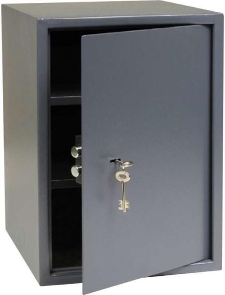 Acél széf mechanikus zárral2db kulccsalSzín : szürkeSúlya: 18,9kgBelső méretei Sz x Ma x Mé : 346x496x270mmKülső méretei Sz x Ma x Mé : 350x500x330mm