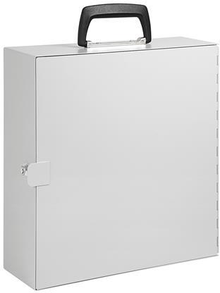 dokumentum tároló doboz acéllemezből A4-es iratrendezőkhöz karcolásálló anyagból, bőrönd-fogantyúval biztonsági zár a fedélben (2 kulcs tartozék) szín: világosszürke mérete: 36,5 x 33,0 x 11 cm belső méretek: 34 x 30,4 x 11 cm tömeg: 1,78 kgAlcsoportdokumentumtárolóZár típusakulcsos