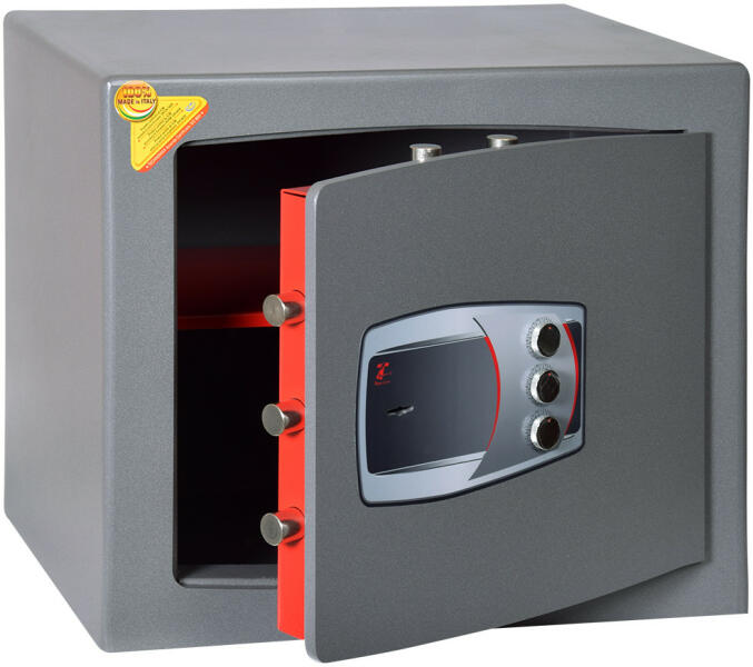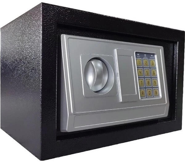 Kis, masszív kivitelű széf elektronikus kóddal. Tökéletesen használható otthon, boltban, cégnél és irodában. A széf tartozékai között két vésznyitó kulcs található, amelyeket akkor használhat, ha elfelejti a PIN-kódot, vagy ha az elemek teljesen lemerülnek. A csomag tartalmaz rögzítőcsavarokat, amelyekkel a széfet a falhoz vagy a padlóhoz rögzítheti. A széf három j