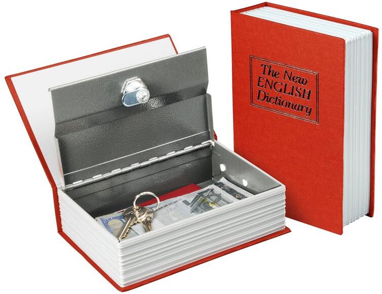 IRIS IBS24 kulccsal nyitható könyv széf 240x155x55mm IRIS IBS24 kulccsal nyitható könyv széf Külső méretek: 240 x 155 x 55mm Tömeg: 0,9kg Csomag tartalma: 2 db kulcs Működés: Mechanikus zár, kulccsal nyitható és zárható Biztonsági kulccsal nyitható, ha szükséges ( A kulcsot soha ne tárolja a széfben!) Borítás: Magas minőségű kemény papír. Szótárnak kinéző külső