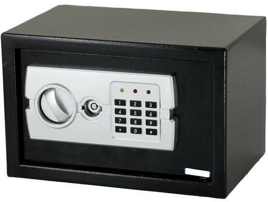 Steinhaus Elektronikus acél széf + kulcs, 150x200x150 mm, Krém Az elektronikus széf apartmanok, szállodák és motelek számára ajánlott. Ideális pénz vagy más értékek tárolásához. Zárási típus: Zárás / Elektronikus nyitás számjegyek kombinációjával, 3-8 számjegyű kód, 4 db AA típusú 1.5V elem; Manuális kulcs biztonságos nyitás rendszer, ha elfelejtette a programoz