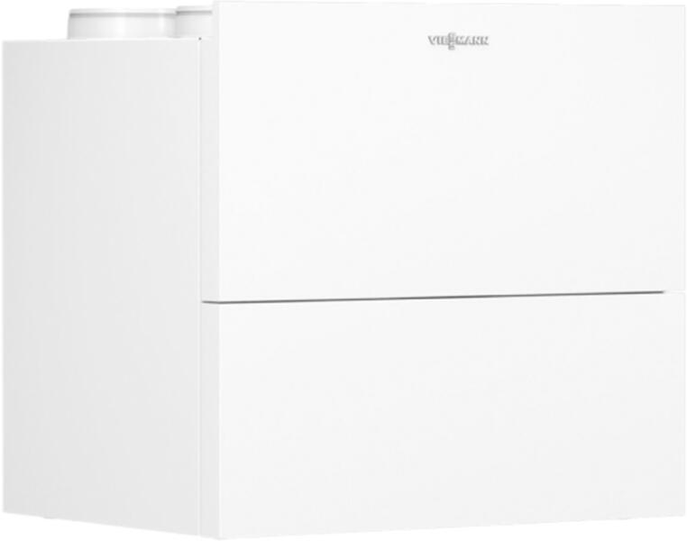Viessmann Vitovent 300-W H32S C325 központi lakásszellőztető hővisszanyeréssel Előnyök Levegő-térfogatáram max. 225 m3/h Automatikus bypass, elektromos előfűtő beszerelve Beépített ellenáramú hőcserélő Kellemes hőérzetet és egészséges klímát biztosít a helyiségben. Csökkenti a szagterhelést Kényelmes kezelés a Vitotronic 200 hőszivattyú szabályozó egysé