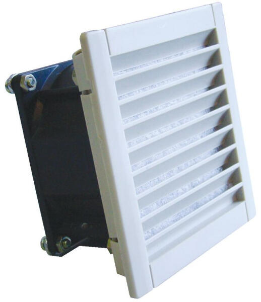 Plastim Ipari alkalmazásra készült komplett szűrőbetétes szellőztető ventilátor 240(270)m³/h légszállítási teljesítménnyel. Kapcsolószekrénybe építése csavarok nélkül elvégezhető a rögzítőfülek segítségével. 260x260mm-es mérettel és IP 54 védettséggel rendelkezik. Gyárilag a légáramlás kívülről a kapcsolószekrénybe irányul. A ventilátor megfordítás