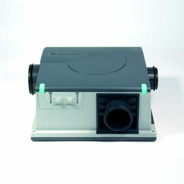 V4A 336 hangcsillapított, fordulatszám szabályozott központi ventilátor Szívócsonkok mérete: Ø100mm vagy Ø125 mm Kifúvó csonk mérete: Ø125 mm A V4A két helyiséget szívó akusztikus központi ventilátor. A folyamatos üzemelésre tervezett motorját egy nyomtatott áramkör vezérli, ami a fordulatszám szabályozást is végzi. Az állandó fordulatszám és a különleges járó