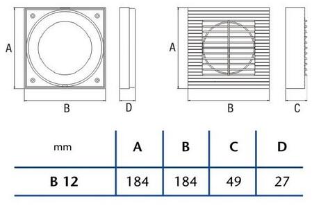 Egycsöves szellőzőrendszerrel ellátott helyiségekben alkalmazható főleg konyhai, fürdőszobai, WC, raktári és más háztartásbeli beszereléssel. Kizárólag fali telepítés. Az előlap és a burkolat kiváló minőségű ABS műanyagból készült, műanyag visszacsapó szeleppel szerelve. 80mm-es csatlakozócsonk. Falon kívüli kivitel. 35 és 100 m3/h kétfokozatú motorral. Idősz