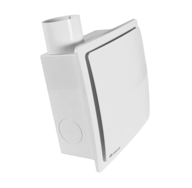 Radiális fürdőszobai ventilátor állítható időzítővel, visszacsapó szeleppel, nagyobb nyomású légáramlással hosszabb, 80 mm átmérőjű légcsatornákba. A ventilátor fehér előlappal rendelkezik, amely illik szinte minden fürdőszobába, a golyóscsapágyak pedig hosszú élettartamot és a folyamatos működést garantálják. A készülék vitathatatlan előnye a beépített