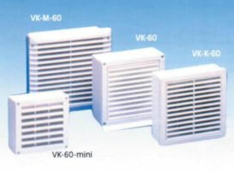 Ventillátor VK- K-60 Fali 100 m3/h Leírás: VK fali ventillátor. Állandó üzemre is alkalmas golyóscsapágyas nagy teherbírású axiális ventillátor. Jellemzői: - A VK ventillátorok a szabvány magyar 110, 125, 150 mm-es PVC csővégekre illeszthetők. - Beépítési módok: oldalfal, mennyezet, tetszőleges helyzet Műszaki adatok: