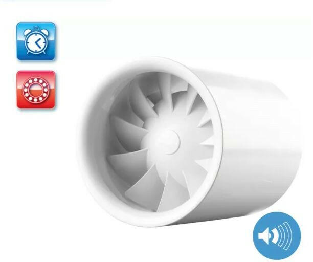 VENTS 100 QUIETLINE T UV-álló ABS műanyagból készült, fürdőszoba, zuhanyzó, konyha és egyéb használati helyiség folyamatos vagy időszakos elszívására. Háztartási csőventilátor, 100 mm légcsatornához, időrelével. Műszaki adatok: Áramfelvétel [A]:0,049Átmérő [mm]:100Fázis:1Feszültség [V]:220-240Golyóscsapágy: Van Időkapcsoló: Van IP védettség:IPX4Légszállít