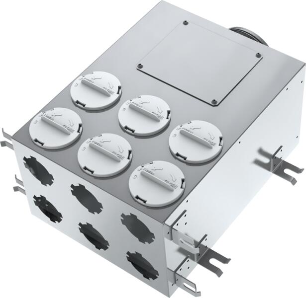 Blauberg Blaufast SR 125/75*6 02 légelosztó dobozFém légelosztó doboz hátsó csatlakozással. (125 mm/6x75 mm) Blaufast légcsatorna rendszerrel kompatibilis. Gyártó: BLAUBERG Kialakítás: Kétsoros Csőcsatlakozás (mm): 125 Légtechnikai rendszer: 63/75 Csatlakozó csonkok elhelyezkedése: Egy oldalon Csatlakozások maximális száma: 6 Anyag:Alucink bevonatú fémÁtmérő [mm]:125/75M