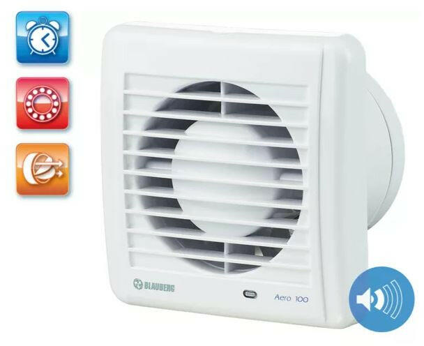 Blauberg AERO STILL 100 T UV-álló ABS műanyagból készült, fürdőszoba, zuhanyzó, konyha és egyéb használati helyiség folyamatos vagy időszakos elszívására. Klasszikus megjelenésű háztartási ventilátor, 100 mm légcsatornához, időrelévell. Golyóscsapágyas kivitel. Konstrukció: Mod ern kialakítás és esztétikus megjelenés, nagy hatékonyság és hosszú élettartam. Mo