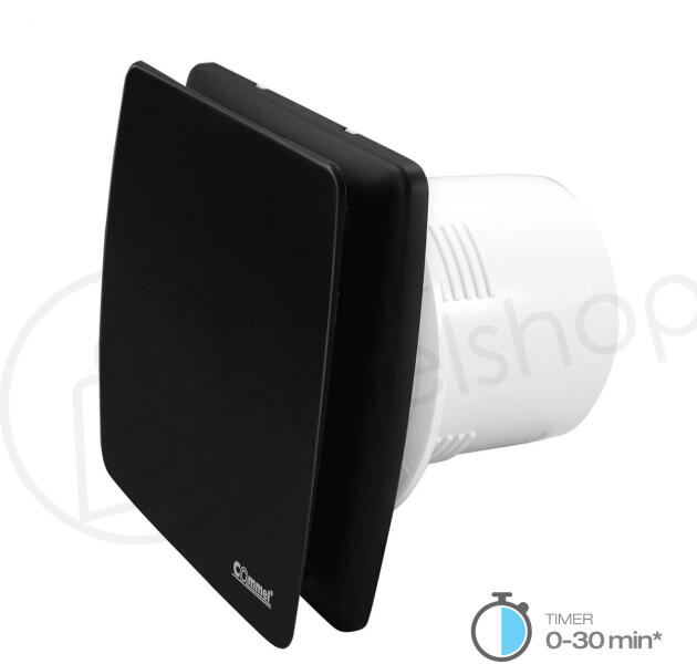 Elszívó ventilátor, golyóscsapágyas, időzítővel, fekete, 220 V, 50 Hz, 12 W, 95 m³/h , 34 db, Ø 100 mm, 2200 RPM, IPX4, 3 év garancia
