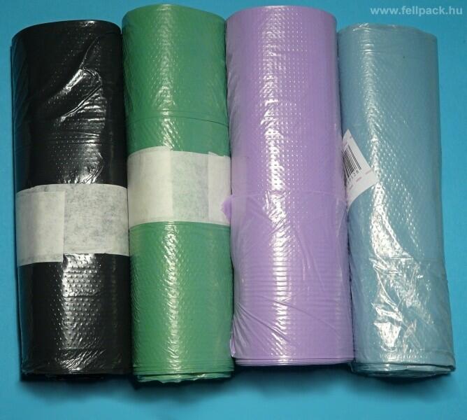 Polietilén zsák rolnizva. Környezetbarát, mert újrahasznosított anyagot tartalmaz. A legkisebb választható mennyiség: 10 db (1 rolni), 200 db/gyűjtő kiszerelés esetén kedvezőbb az ára.
