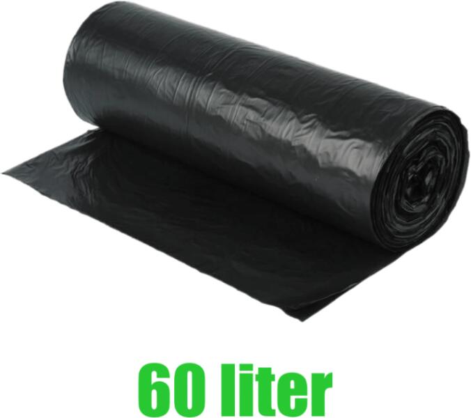 Rollnizott szemeteszsák különbözõ méretekben otthoni és irodai felhasználásra Méret: 60x70 cm űrtratalom: 60 liter vastagság: 15 mikron színe: fekete 20 db/tekercs, 25 tekercs/gyűjtõ