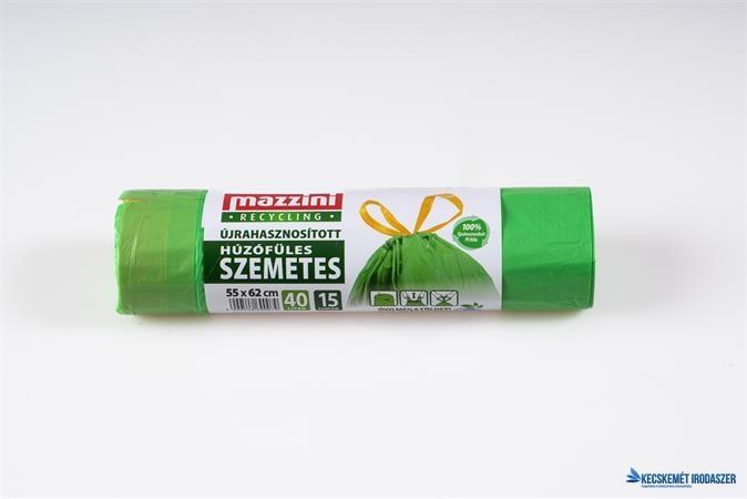Ezek a termékeink csak a szelektív hulladékgyűjtésből származó PE fóliából készülnek, hatékonyan felhasználva a meglévő műanyag hulladékot, így 100%-ban újrahasznosítottak. Praktikus fülének használatával a szemetes biztonságosan és higiénikusan zárható, vihető. - 100%-ban újrahasznosított PE fólia - köthető füles - 35 liter - 20 db/tekercs - 49x60 cm/db - zö