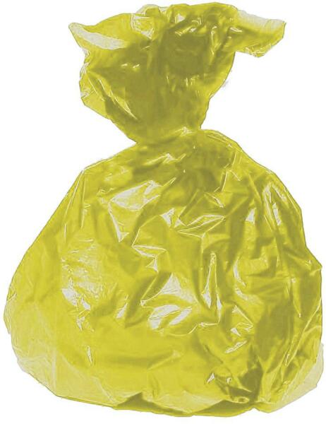 Sárga polietilén zsák rolnizva. Környezetbarát, mert újrahasznosított anyagot tartalmaz. A legkisebb választható mennyiség: 10 db (1 rolni), 200 db/gyűjtő kiszerelés esetén kedvezőbb az ára.