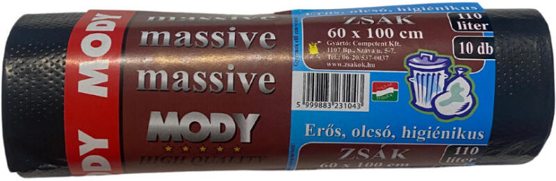 A Szemeteszsák Massive egy erős és tartós polietilén zsák, amely 110 literes űrtartalommal rendelkezik. A mérete 60x100cm . Egy tekercsben 1 0 darab található. Ezek a szemeteszsákok kiválóan alkalmasak különböző feladatokra1 Hulladé kgyűjtés : A Massive zárószalagos szemeteszsákok ideálisak háztartási hulladék, papír, műanyag vagy más szemét zsákolására. Tárolás