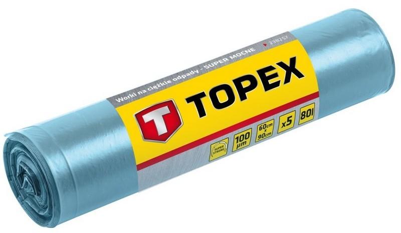 Hulladékzsák nehéz teherhez 80L, 100 mic zsák nehéz hulladékokhoz 80 L, világoskék, 5 db, szupererős, méretek: 60 x 90 cm, vastagság 100 mic, LDPE fólia
