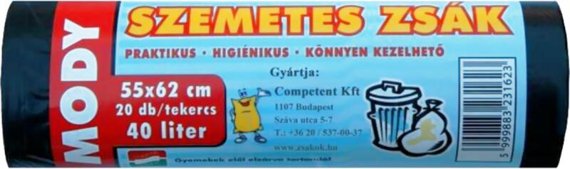 Mody szemeteszsák 40L 20 db-os kiszerelésben 55x62cm Hivatalos magyarországi forgalmazótól. Leírás: Mody szemeteszsák 40L 20 db-os kiszerelésben Mérete: 55 x 62 cm Kiszerelés: 40L