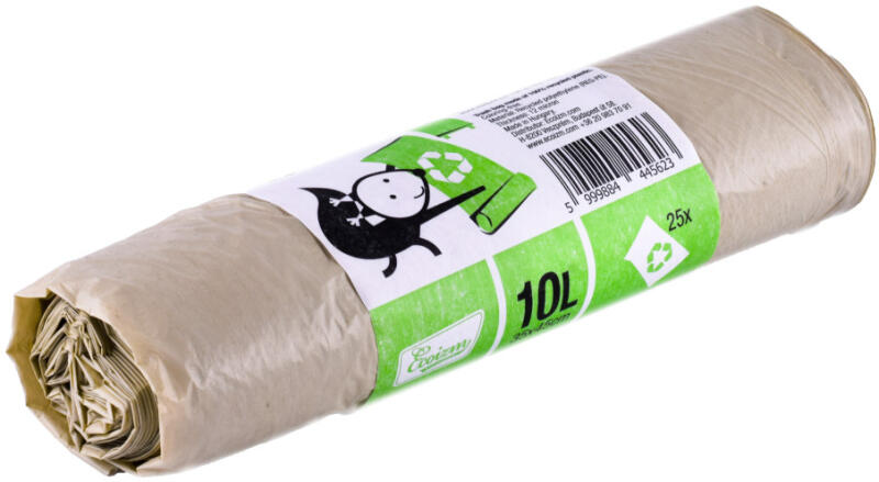 Zöldbolt Újrahasznosított Szemeteszsák - 10 liter - 25 db "Magyarországon begyűjtött szelektív hulladékból készült szemeteszsákok. 100% újrahasznosított, erős, színezékmentes. A zsákok Budapesten készülnek, helyileg begyűjtött polietilén hulladékból. 100%-ban szelektíven gyűjtött hulladékből készült szemeteszsák. Anyagvastagság: 12 mikron Méret: 35x45cm (10 lite
