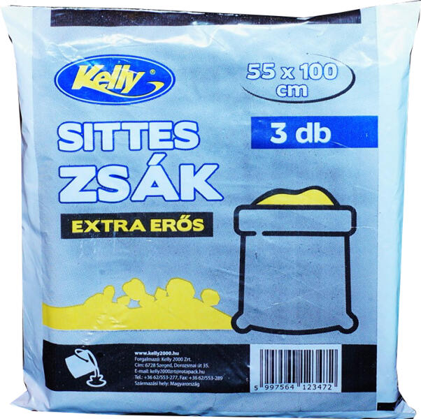 Sitteszsák KELLY Extra erős 55x100 cm 3 darabos Sittes zsákunk nagy teherbírású, 90 mikronos vastagságának köszönhetően nehezen szakad. Alkalmas a háztartási, építési és ipari hulladék összegyűjtésére.