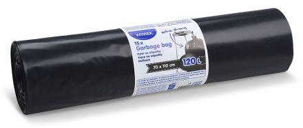 Hulladékzsákok 120 l LDPE, Type 100 fekete 70 x 110 cm. 1 tekercs = 15 db. Vastagság 70 mikron.