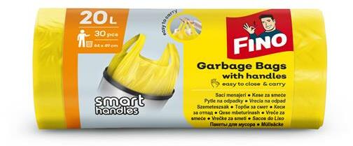 A FINO Smart Handles szemeteszsák köthető fülének köszönhetően könnyen és higiénikusan zárható. -továbbfejlesztett, erős anyag -anyaga: 100%-ban újrahasznosított műanyag -köthető füles -űrtartalom: 20 l -méret: 44 x 49 cm -30 db/tekercs