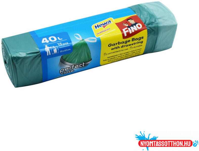 Szemeteszsák önzáró szalaggal 40 liter 55 x 62 cm 15 db/tekercs Fino Katalóguskód: 55924