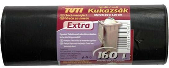 Szemeteszsák TUTI Extra 160L köthető füles 10 db/tekercs Szín: Fekete Űrtartalom: 160 liter Méret: 80x120 cm Kiszerelés: 10db/tekercs Extra erősségű 160 literes kukazsák.
