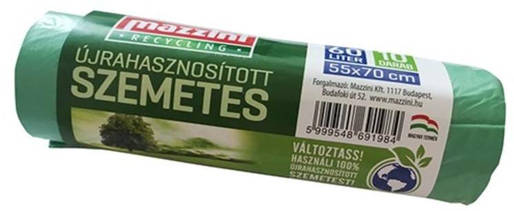 Szemeteszsák újrahasznosított MAZZINI 60 l 55x70 cm 10 db/tekercs - Fotoland fotó és irodaszer webáruház - Rendelj raktárról, 170-os áron. Gyors kiszállítás. Háztartási és konyhai hulladék gyűjtésére, tárolására alkalmas műanyag betétzsákokEzek a termékeink csak a szelektív hulladékgyűjtésből származó PE-ből készülnek, hatékonyan felhasználva a meglévő műa
