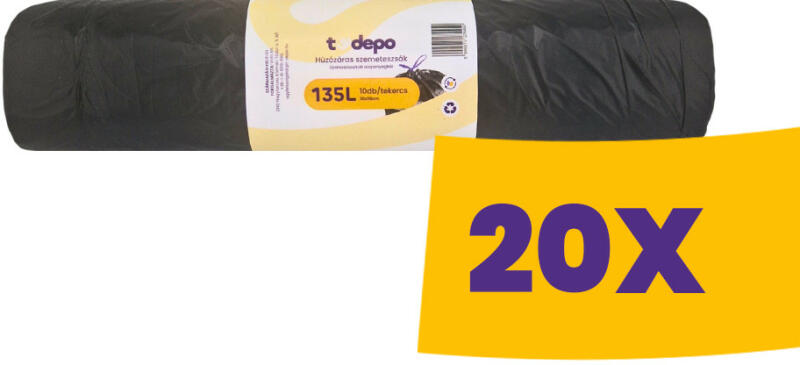 A 135 literes húzózáras szemeteszsák egy praktikus és erős megoldás a hulladékgyűjtéshez. A 135 literes húzózáras szemeteszsák egy praktikus és erős megoldás a hulladékgyűjtéshez. Ez a szemeteszsák kiválóan alkalmas otthoni vagy irodai használatra. A húzózáras kialakítás lehetővé teszi a könnyű lezárást és a szagok elzárását. A vastag anyagból készült, íg