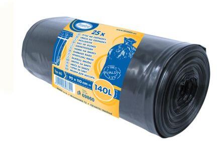 Hulladékzsákok 140 l LDPE, Type 60 fekete 90 x 110 cm. 1 tekercs = 25 db. Vastagság 38 mikron.