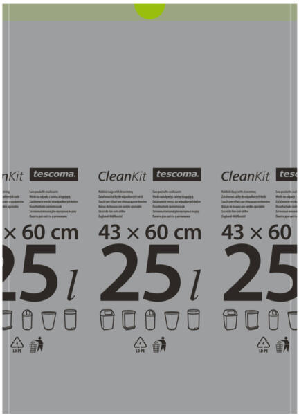 Tescoma CLEAN KIT összehúzható szemeteszsák 25 l, 15 db Extra erős szemeteszsák otthoni vegyes hulladékra, ideális a PRESIDENT 20 literes pedálos szemétkosárhoz (kód 902014).