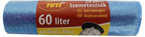 Szín: kék Űrtartalom: 60 l Méret: 55x65 cm Kiszerelés: 20 db/csomag Gyűjtő kiszerelés: 100 csomag/doboz