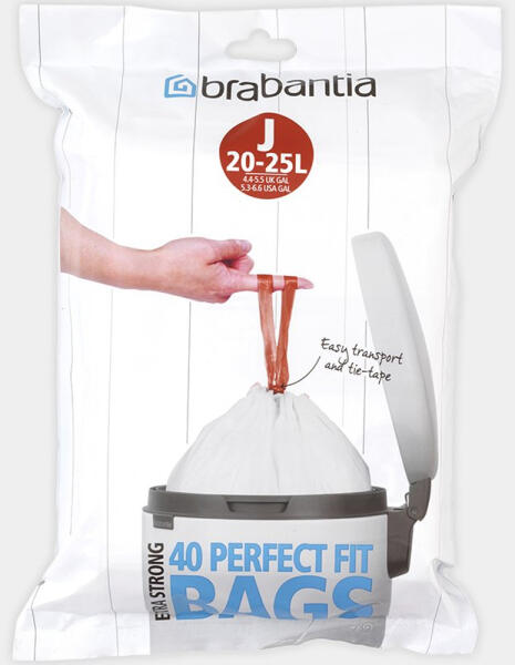 Brabantia PerfectFit szemeteszsák (Code J) 23 liter, 40 darab - 115608 A Brabantia testre szabott hulladékgyűjtő csomagjai már nagy adagolócsomagban kaphatók. Lapos zsák nagy nyílással. Csak húzza ki könnyedén a következő zsákot nem kapcsolódnak egymáshoz, nem akadnak össze. összesen 40 hulladékzsák, amelyek tökéletesen illeszkednek a Brabantia 23 literes edényeihez Könny